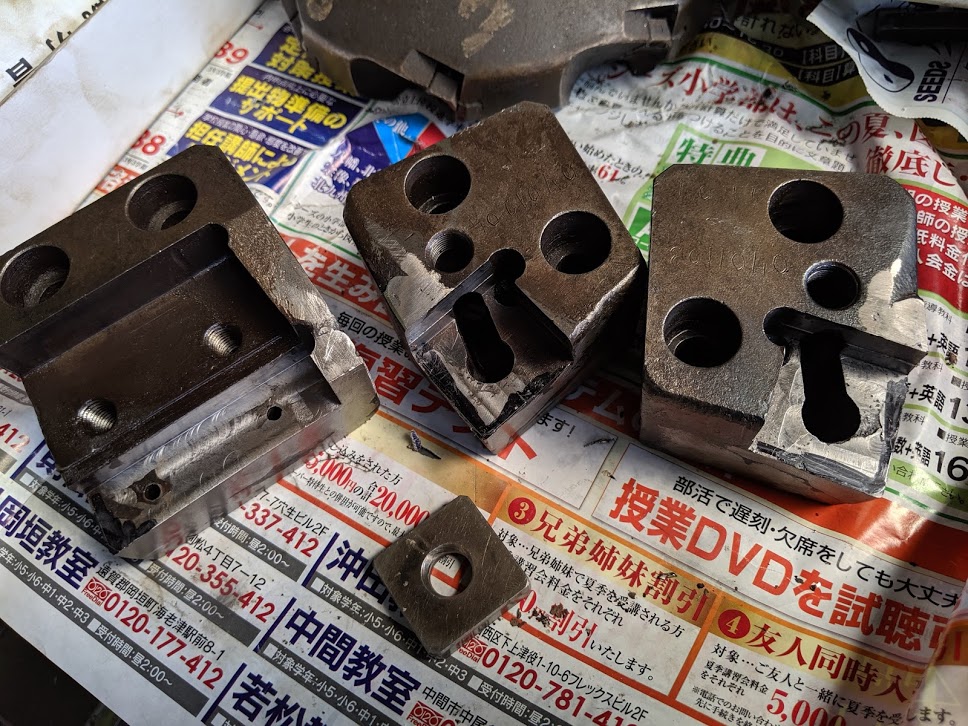 大型の工作機械に取り付いて品物を削っているバイトで、チップや敷板の乗る部分が加工時のチカラや切粉の接触等で傷んでしまい、チップがまともに置けなくなったバイトの補修をしています。