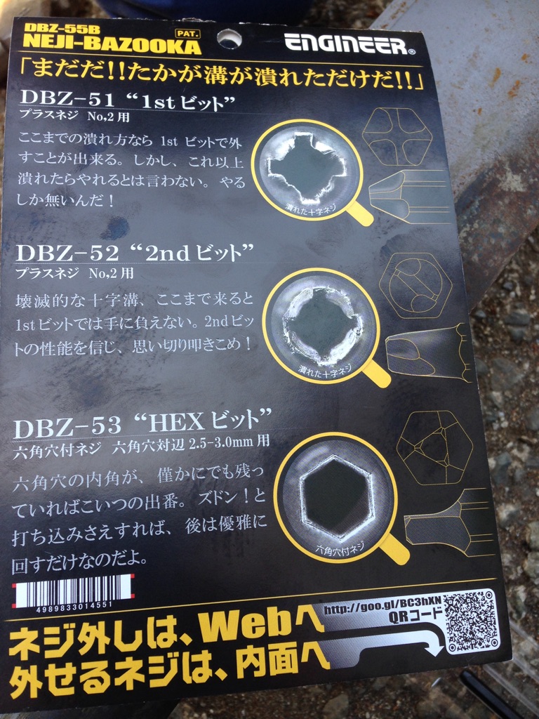 こんにちは。Yuichiです。 「ネジザウルス」 って聞いたことありますか? 株式会社 エンジニア(本社 大阪) さんが出されている工具の 名前なのですが、簡単に言うとペンチのような形をしてます。 ドライバーや六角レンチで外そうとしたネジの穴がグリグリやってる内に 潰れてしまった!どうしよう?ネジが外せない。。。困った(・・;) みたいな時にガッチリと頭をつかんでそのまま回して外せます! というものなのですが、今回はそのシリーズで 「ネジバズーカ」 というものを使ってみました。 いやぁ驚きました。 その名前のインパクトも去ることながら 完全に潰れた皿ビスの頭にネジバズーカが喰いつく喰い付く! 工具で外すのは諦めていましたが、ネジバズーカのお陰で 短時間で次から次に皿ビスを取ることができました。 ![]() ![]() ![]() |
