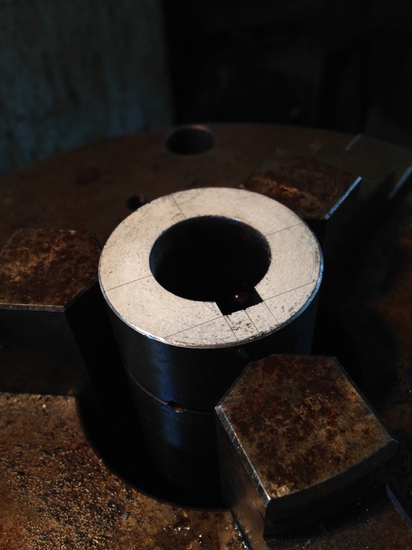 「穴の内側にある7mmのキー溝を8mmに修正可能ですか?」 との依頼があったので、「加工可能です」と返答しました。 依頼の時点では完全に貫通穴のつもりで、ブローチ盤で修正しようと考えてましたが、来てみてビックリ! 「止まり穴!!」 しかも穴径もそこそこ小さい。。バイトが逃げるヌスミも少ない。。。 一気に難易度が上がります。 こうなると弊社ではスロッターで修正するしか方法はありません(^^;) 手のひらサイズの現物。 ![]() 止まり穴で、ヌスミが少ないです(^^;) ![]() ハイトゲージで丁寧にケガキます。 取り代が片肉0.5mmなのでほんの僅かです(^^;) ![]() 通りを丁寧に出します。 ヌスミと底面との余裕は僅か数ミリです(^^;) バイトを突き当てそうで怖いので高さは特に慎重にセッティングします。 ![]() 小さいバイトを研いで慎重に加工します。 ![]() 丁寧に加工し、公差通り上手く加工できました(^^)/ ![]() 無事に任務完了しホッとしました(^^) ![]() |