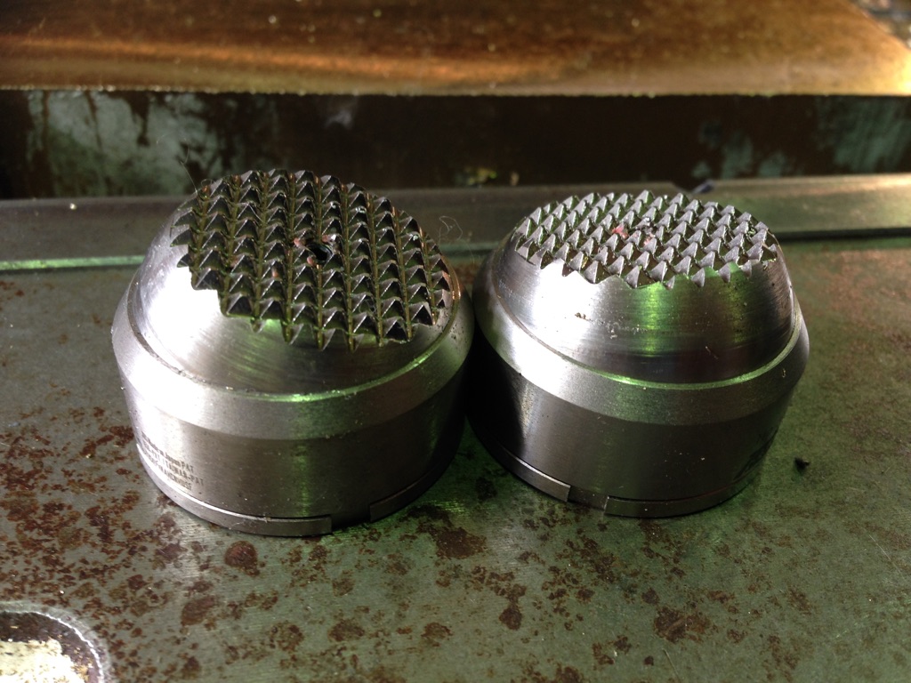 先日購入した「FREE-LOCK」を実際に使用して加工しました。 感想は ・ ・ ・ 「とても良い!!\(◎o◎)/!」 掴みの部分は写真では分かりにくいですが、上下左右でかなり斜めになっており、 バイスでそのまま掴むのは難しい場面でしたが、このFREE-LOCKを当てると 面になじんで素直に掴むことができ、重切削してもビクともしませんでした。 今回購入した分は、表面がギザギザタイプなので荒削り専用になります。 なので仕上がっている部分に当てて掴んでしまうと傷が入ります(^^;) その分、しっかり加工物を掴むことができていて、安心感がありました。 別売りで仕上げタイプもありました。 ![]() 掴む表面が斜めでもコマが自在に動くので融通が効き、しっかり掴むことができます(^^) ![]() バッチリ掴んでます☆ ![]() 使い勝手を良く考えられており、これは様々なシーンで活躍しそうです(^^)/ |