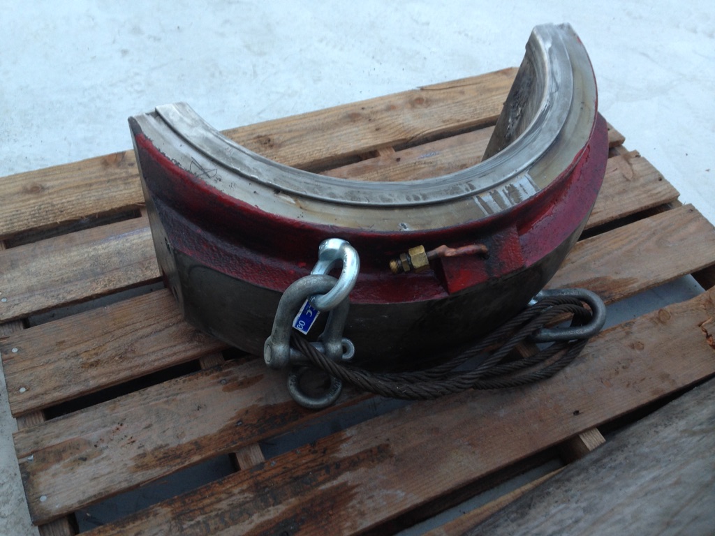 「軸受の修正をお願いしたいので今から持ち込みます」 とお客様から依頼を受けたのですが、その時点では 「ブッシュか何かかな?」 位の想像でしかありませんでした。 しかし、いざ現物を見た瞬間、 「!!!デカッッ!」 そして 「重たっ!」 「・・・ん?この材質なに??アルミのような雰囲気だけど・・」 等と少ない知識で精一杯考えていた所に社長(牟田淳一氏)が登場し、 「バビットだ」 と一言。 バビット??? 聞いたところ、バビットメタル=ホワイトメタルとも呼ばれ、重荷重が掛かるすべり軸受けに使われていて、弊社でも昔はよく溶かして使っていたとのこと。 ただ、今回のサイズは未経験ということで、どうやって修理するのか社内で議論です。 知識と経験というのは本当に大きな財産だなぁと社長を見ていて改めて実感しました(^^) 持ち込まれた現物。表面が傷んでいます。 150kg~200kg位ありそうです。 ![]() 潤滑油用の配管があるのにホワイトメタル側には通っていない?何かおかしい。。 ![]() 両サイドのヌスミに溶けきれていないボロボロのバビットがこびり付いてました。 (写真は除去済み) ![]() スケッチして各寸法を測定します。 ![]() 溶着していないバビットが至る所にありました。 ![]() 現物だけでは正確な寸法が解らないので、翌日相手側の軸径や各寸法をマイクロ等で測定しに行き加工仕上げ寸法を決定しました。 今回のバビットメタル(ホワイトメタル)補修は未知数ですが、治せるように精一杯やるだけです! |