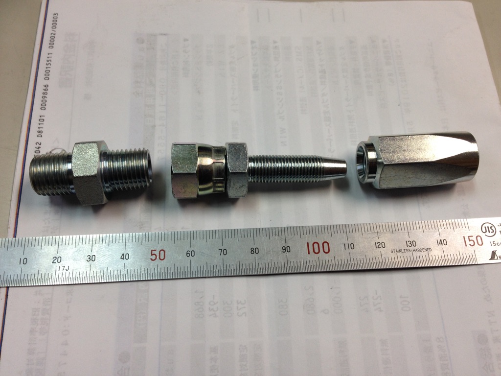 軸受本体の潤滑油用配管で、 『自在に動き、さらに取り付けも自由自在』 となる配管を探していたら見つかりました! 『ニッタ・ムアー』さんの「リューザブル継手(ねじ込み方式)」 です(^^)/ ![]() 扱いは簡単で、このタイプのホースと金具を揃えたら、あとは 「現場で必要な長さにホースを切り、金具を入れてスパナ(片口、モンキー等)で締めるだけ」 というめちゃくちゃシンプルで取扱い易いものです。 実際に使用してみた所、特殊工具いらずでこれは非常に現場で重宝するなと思ったのですが、難点を上げるとすれば、 ねじ込む際に結構な力がいる という点です。 ホースの中心に芯金みたいな物をねじ込むのですが、最初は軽くスパナで回せていたのが、 途中からめちゃくちゃ重たくなり、かなりのチカラを必要としました。 ただ、高圧用配管なので、逆に言えば しっかりねじ込まれている=耐圧性が高い という事になると思います。 継手金具。 ![]() 継手金具を分解した写真。左のニップルは別で用意したもの。 ![]() ホースにねじ込んだ写真。これは便利!! ![]() ねじ込む際のチカラの有無はありますが、とにかく 特殊工具は必要なく、モンキー等があれば好きな長さで自在に現場で設置できる という点が非常に魅力的なホースになります。 今回は潤滑油用配管として軸受本体に組み込みますが、このホースは油圧用配管として今後も色々と応用できそうです(^^) |
