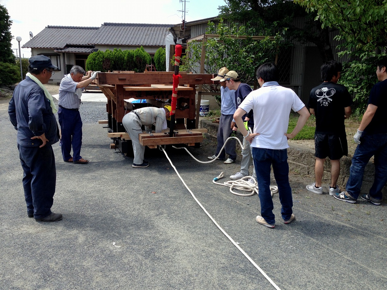 修理・改造を終えた山笠台車を担当の方々が引取りに来られました。