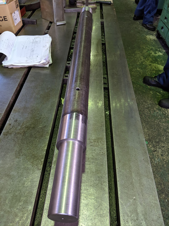 「スクリュー軸の羽根が傷んでいるので新しく製作できますか?図面はありません。」 との依頼を受けたので現場へ。 現物が分解されて置かれていたのでそのままスケッチしたのですが、スクリュー本来の寸法が解らない位に傷んでいたので、 取付け側との形状・位置関係からイメージしてスクリューシャフトの寸法を決定しました。 ”早目に製作して欲しい”とのことだったので早速材料を手配します。 スクリューの羽根は曲げ屋さんに依頼しました。 シャフトを加工したところ。 ![]() シャフトとスクリューの羽根。 ![]() キレイにバッチリ曲がっています! ![]() 仮付けした所。 ![]() 曲げ屋さんの羽根曲げ精度が高く、キレイな形のスクリューシャフトになりました(^^)/ 本付け後、仕上げ加工となります。 |