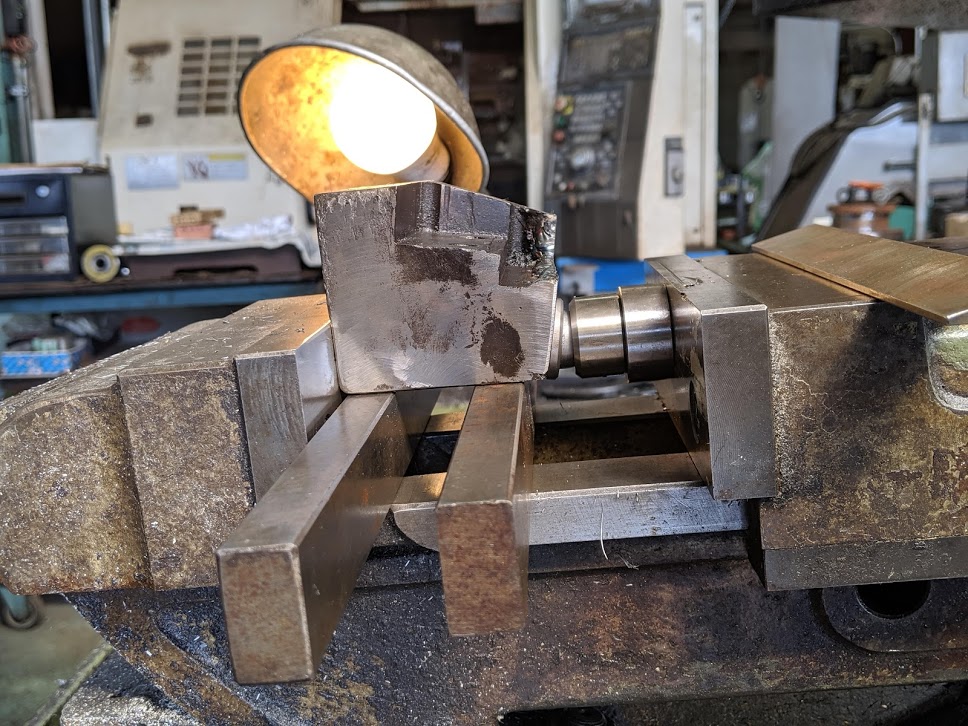 大型旋盤やターニングで使われるバイトの補修での加工編ですが、 ここではあのアイテムが大活躍してくれています(^^)/ バイトがバイスで普通にクランプできる形状だと何の問題も無いのですが、 逃がし角の関係で角度を倒しているものも多く、今までクランプする際、 矢を入れたり、ペーパーを挟んだりして加工するものの、しっかりと クランプできていないのでバイトが動いたりしてとても苦労していました。 そこで、昨年購入してから活躍してくれている「株式会社 エヌ ジェイ アイ」 さんの「Q-ロック」で掴んだところ、ガッチリ!!クランプしてくれて、 何のストレスも無く加工することができました(^^)/ カートリッジタイプをクランプしている所。 「Q-ロック」の自在力が活きてます(^^)/ ![]() 縦・横の斜めにも見事に対応しています。 ![]() しっかりクランプしているので安心して荷を掛けれます。 ![]() 各種加工が完了した状態① ![]() 各種加工が完了した状態② ![]() この後、 手入れ⇒敷板・チップを入れ締め込み確認 を行い、納品となります。 斜めの面を安心してクランプできるのは本当に助かります(^^) |