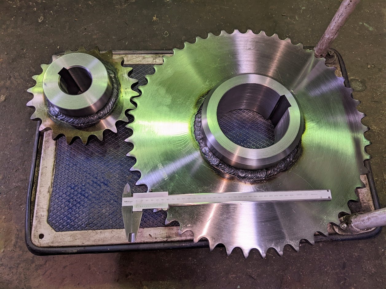 お客様からボス付きスプロケットの製作依頼を頂きました! 今回製作したのは2ヶですが、その内一つは大きなスプロケットでした。 材料を手配し、ボスとスプロケットを溶接前加工。 それぞれを組み込み、溶接⇒仕上げ加工⇒キー溝加工の流れで加工しました(^^) 製作したスプロケット。 大きな方は重量も結構ありました(^^;) ![]() 各寸法、指定公差でバッチリ加工できました(^^) ![]() 小さな方のキー溝はJIS規格でしたが、大きな方は規格外だったので通常はスロッターでの加工になるのですが、スプロケットの外径がかなり大きかったため段取りの関係でブローチ盤でキー溝加工を行いました。 牟田鉄工では規格外のキー溝でもブローチ盤、スロッター、時にはボーリングを使って対応できる体制を取っております(^^)/ |
