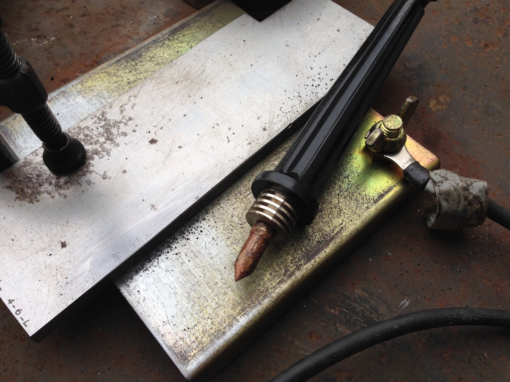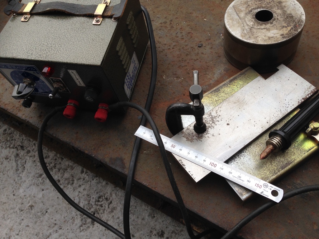 銅のペン先が素材に触れると火花が出て、素材が僅かに削られ