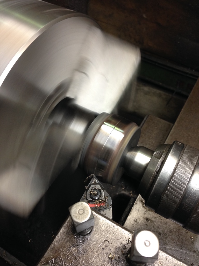 溶接部分はかなり硬いため汎用旋盤で様子を見ながら少しずつ慎重に削ります。