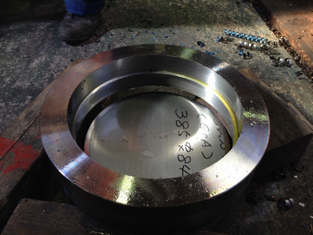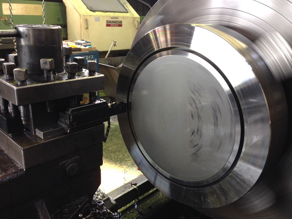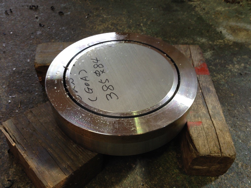 素材はΦ385 x 84t で、抜き取るコアの外径はΦ290です。