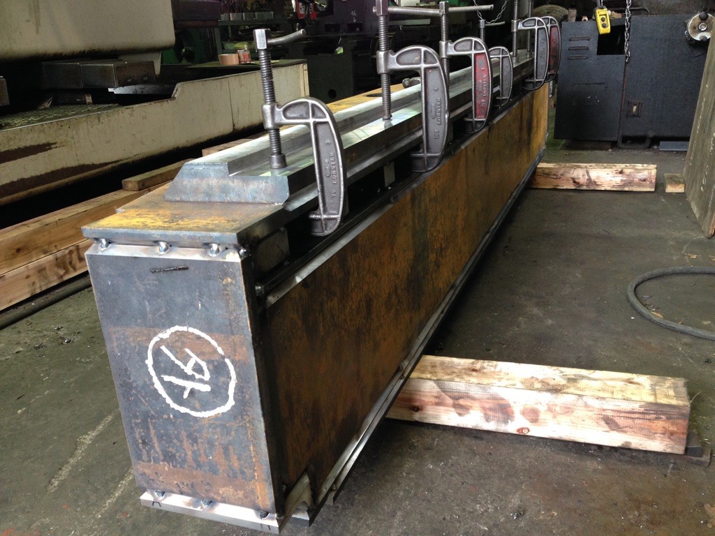 鉄板は長い上に1枚1枚がとても重く、慎重に仮付けしていきます。