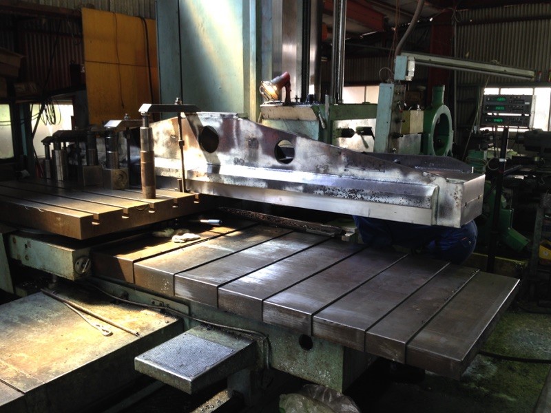シャーリング修理⑭下刃受台加工(ボーリング)