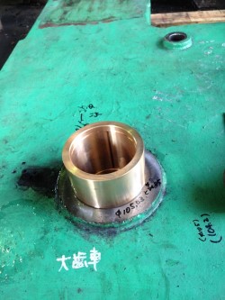 その軸受部に入って軸を直接受けるメタルを左右の側板にそれぞれ打込みます。