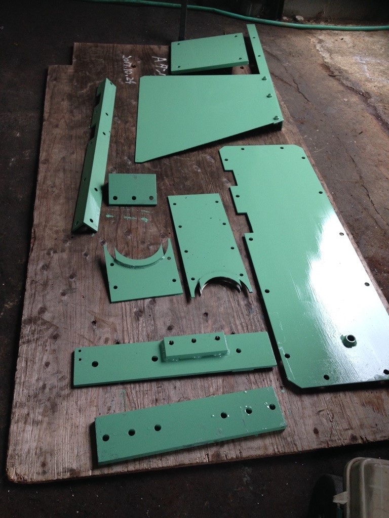 シャーリングのモーターカバーやギアボックス等に塗装をします。