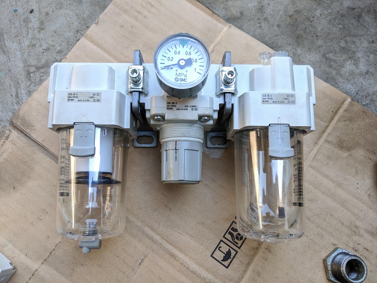 シャーリングに3点セット(空気圧調質器)と電磁弁を取り付けます。 続きを読む