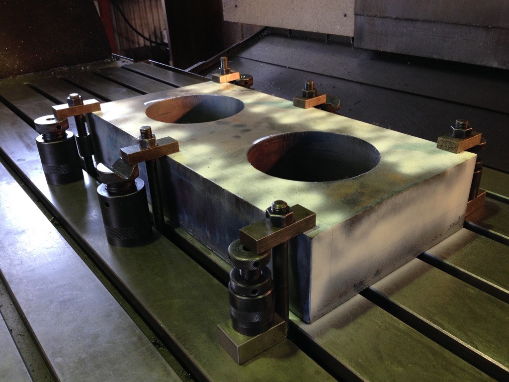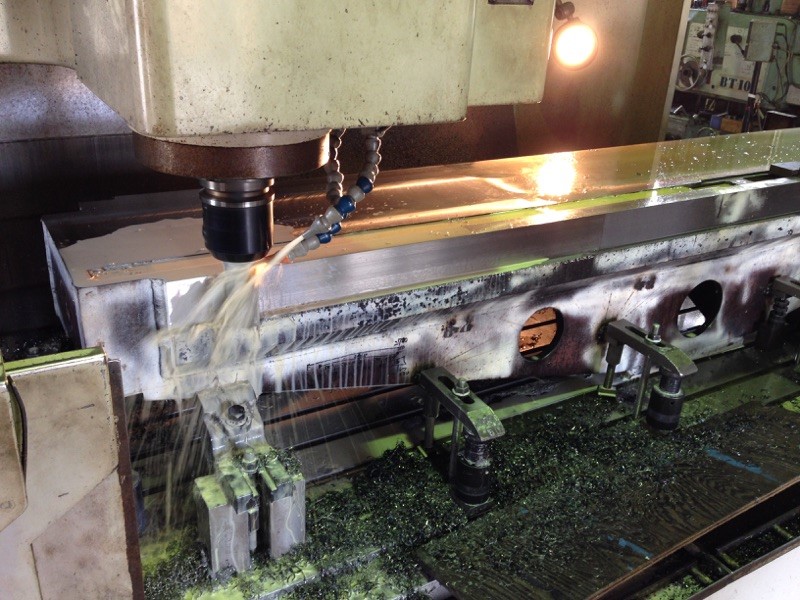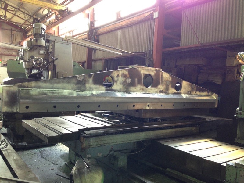 シャーリング修理⑭下刃受台加工(ボーリング)