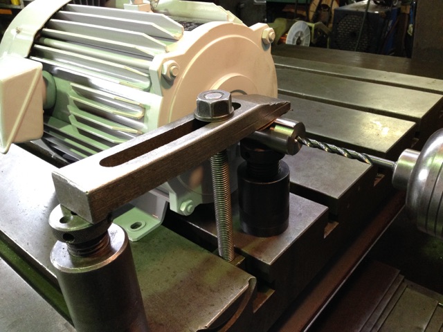 モーターの軸端面にタップ立て(M10・左ネジ) |