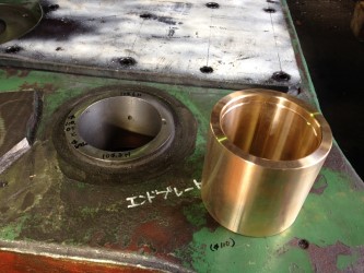 シャーリング修理⑲側板に軸受メタル打込み