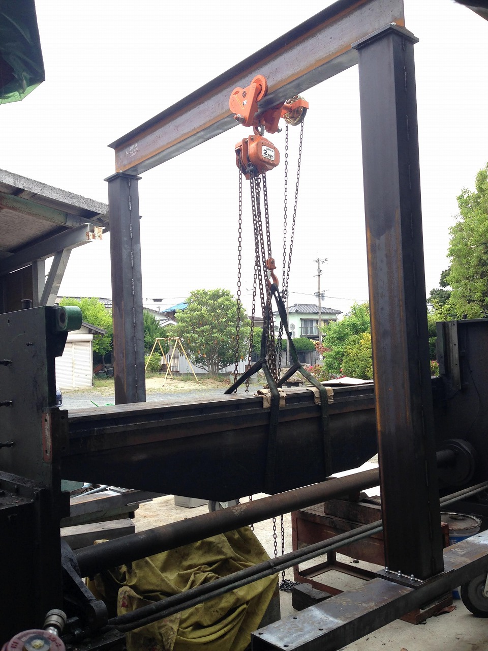 自作した簡易門型クレーンを使ってシャーリングを分解していきます。 続きを読む