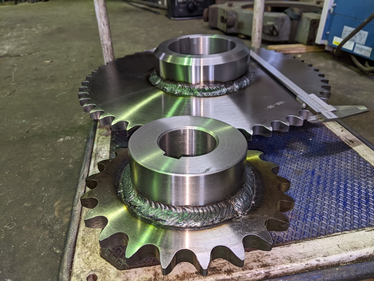 A型スプロケットをボスに溶接してスプロケットを製作しました。